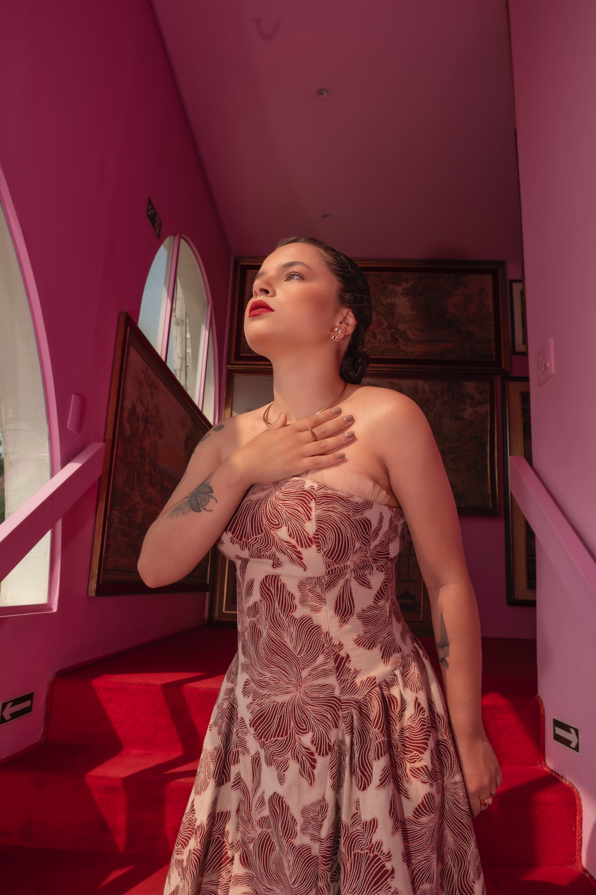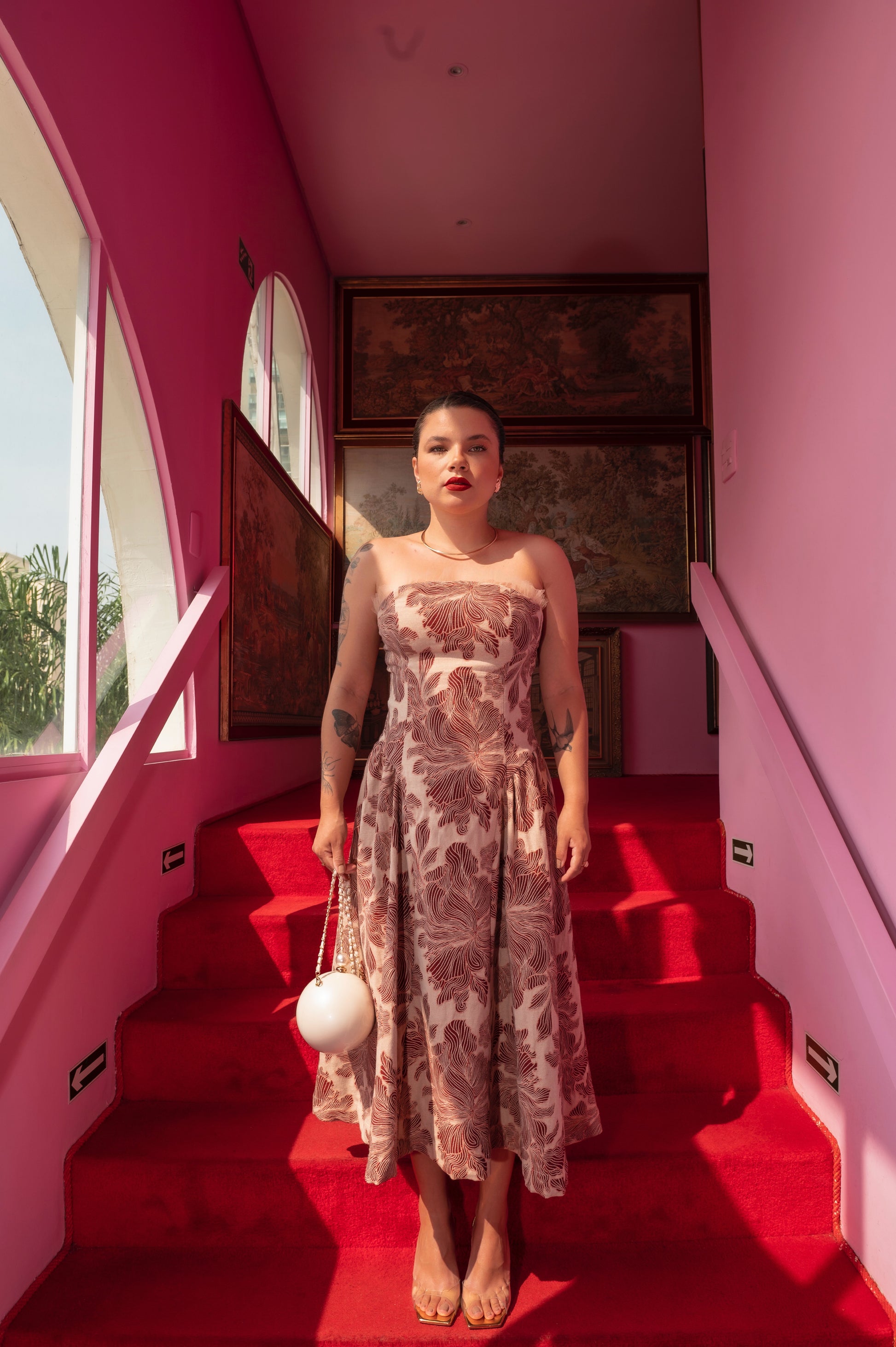 Com um comprimento midi, o Vestido confeccionado em Jacquard exclusivo e sustentável se destaca pelo seu detalhe em tule que trazem uma presença forte e contemporânea. A saia godê é um complemento ao verdadeiro charme da peça. Cada detalhe artesanal transforma este vestido em uma expressão única de personalidade.